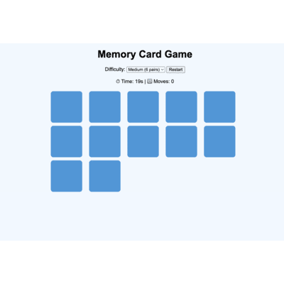 A responsive and interactive card matching game with animated flipping, timer, and difficulty settings. Images replace traditional emojis for enhanced visual appeal.